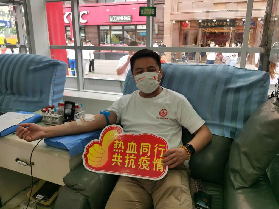 为纪念第19个世界无偿献血者日,2022年6月12日上午,四平市红十字会海上虎志愿服务分队在四平市仁兴步行街献血屋前开展纪念6.14世界献血者日活动。