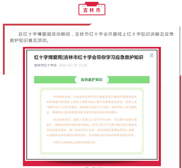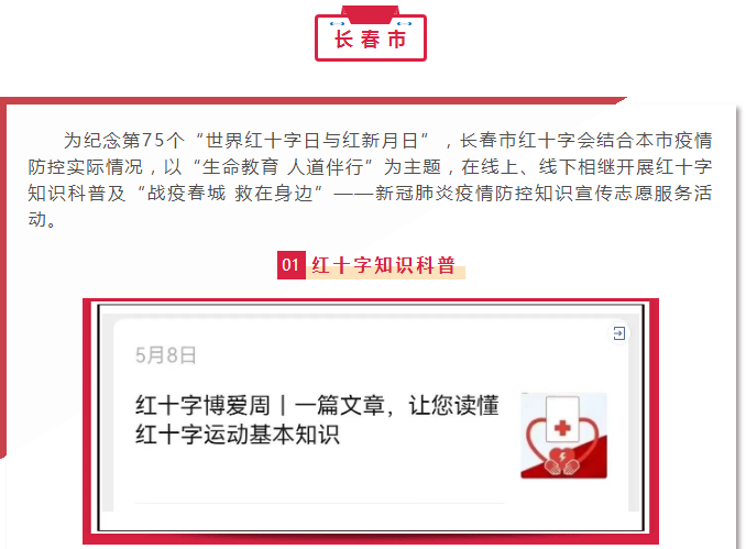 纪念第75个世界红十字日与红新月日,吉林省内各市、(州)开展“红十字博爱周”集锦
