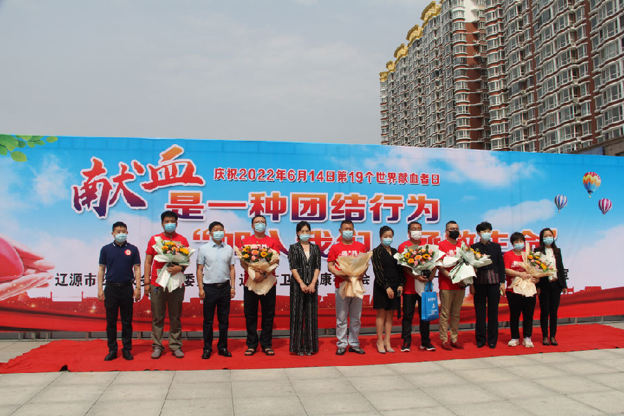 在第19个“世界献血者日”当天,辽源市红十字会联合辽源市公民义务献血委员会、辽源市卫健委和辽源市中心血站在东方广场开展宣传活动。