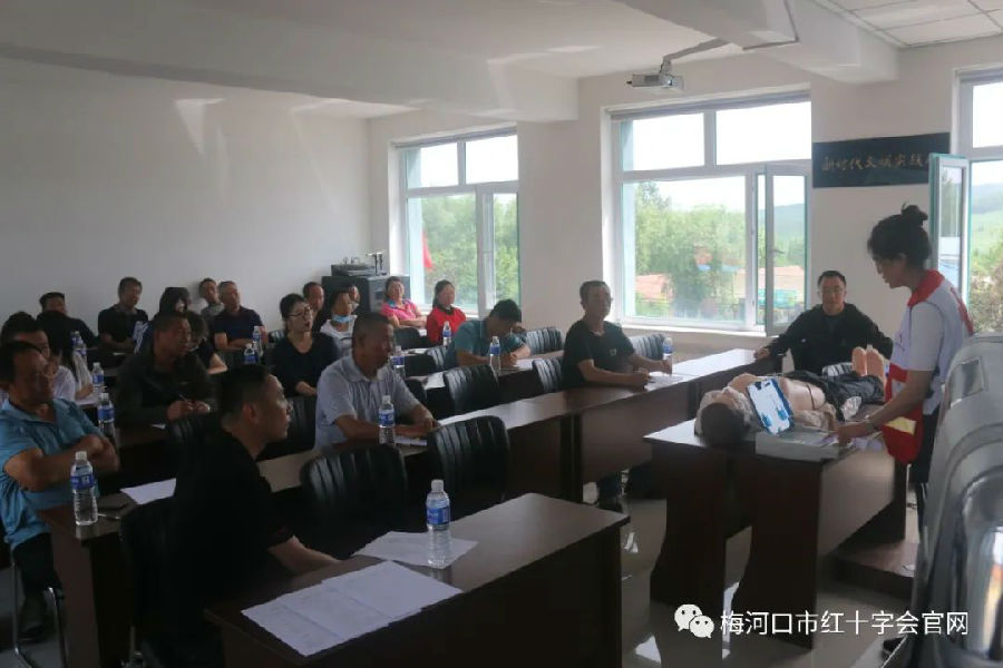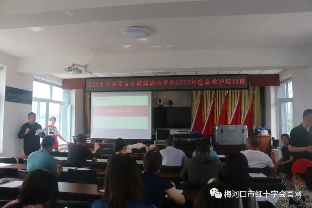 开展应急救护培训,普及应急救护知识,组织志愿者参与现场救护是《中华人民共和国红十字会法》赋予红十字组织的重要职责。为推进梅河口市红十字应急救护工作高质量发展,发挥红十字会在公众参与应急救护培训中的主体作用,不断提高应急救护知识在人民群众中的普及率,按照省红十字会要求,秉承“公众参与、现场教学、注重质量、稳步推进”的原则,2022年6月29日市红十字会联合水道镇政府举办水道镇2022年应急救护培训班,机关干部、村三委成员近40人参加了此次培训 ,拉开全市2022年应急救护培训序幕。