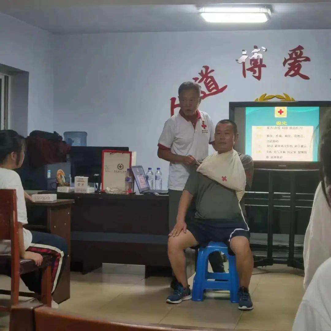 培训过程中,授课老师通俗易懂地为孩子讲解红十字运动基本知识和救护新概念等理论讲解、并亲身示范动作要领,手把手指导急救技能操作注意事项。最后,孩子们分组实践进行模拟实操考核。