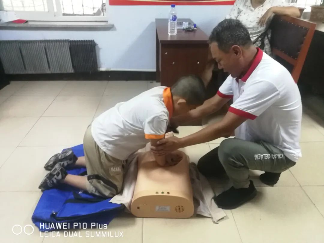 培训通过观看教学视频和现场实操演练,向孩子传授心肺复苏CPR、AED使用、气道异物、海姆立克法等近20个应急救护技能。