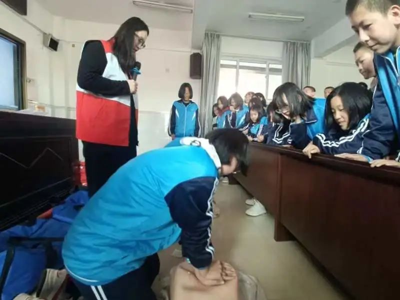 活动中,红十字会讲师为学生讲授了气道异物梗阻、心肺复苏、创伤救护等应急救护知识,针对青少年实际情况,重点讲解急救理论知识要领。