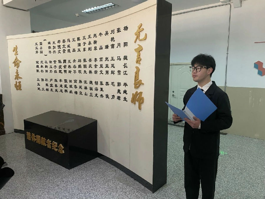 吉林医药学院学生代表何岩涛表示,人固有一死,但有的人在百年之后捐献自己的遗体,生命的价值还将延续。他们用行动诠释了生命离开的意义。我们致敬每一位遗体捐献者,他们无偿捐献遗体的义举,不仅让生命以爱的方式延续,更以行动引领越来越多的人书写爱心、感恩社会,演绎人间真善美。