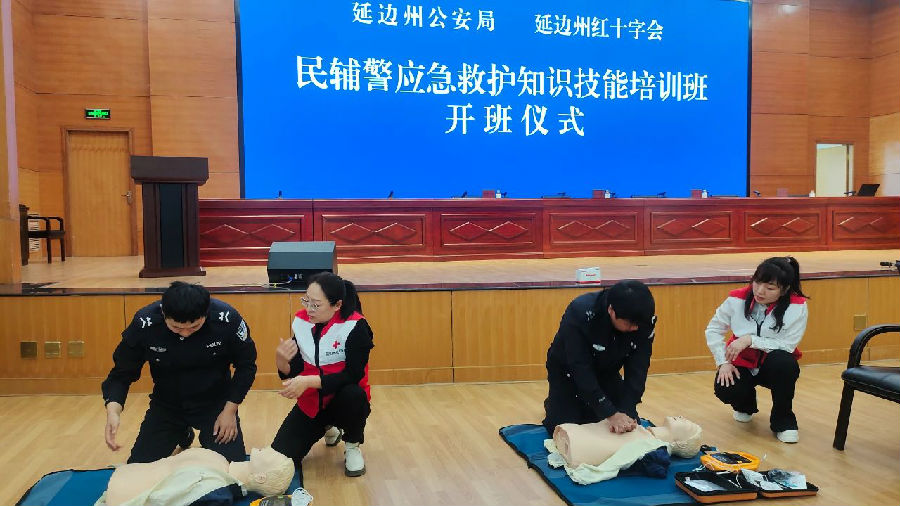 为进一步提升广大民辅警防灾避险和自救互救能力,掌握应急救护基本技能,更好肩负起守护人民生命财产安全的职责使命,4月8日,延边州公安局机关民辅警应急救护员培训班正式启动,此次培训由延边州公安局、延边州红十字会联合举办,共11期,计划组织500余名一线民辅警参训学习急救技能。