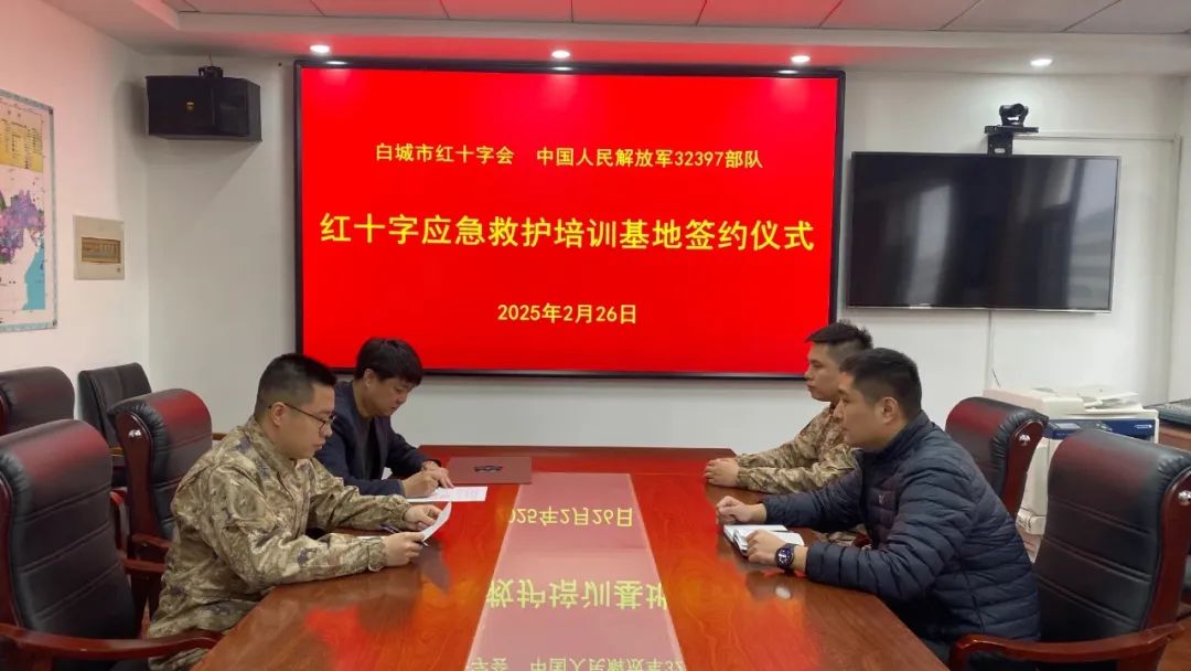 为深入贯彻落实中央军委后勤保障部、中国红十字总会关于推动红十字会事业军民一体化发展的有关要求,2月26日,白城市红十字会与中国人民解放军32397部队举行成立白城市红十字应急救护培训基地签约仪式,市红十字会专职副会长刘贺、32397部队卫勤处处长黄剑秋及有关部门负责同志参加此次活动。双方共同表示,应急救护培训基地的成立是白城市深入落实军民一体化发展的具体举措;是深化军民融合,为民造福的实际行动;是为新时代国防和军队建设贡献红十字力量的有力实践。下一步,双方将围绕“应急救护培训进军营”活动,推动“三献”工作方面的深化合作。