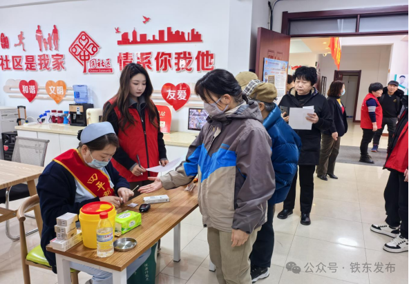 社区搭台,整合资源促公益。北大桥社区充分发挥基层纽带作用,积极动员群众参与,精准覆盖目标群体,广泛整合各方资源,合理划分了休息区、培训区、义诊区,配备了热水、纸巾等便民设施,为居民们搭建了一个便捷的医疗服务平台,促进了公益服务在社区的生根发芽,营造了互帮互助的良好社区氛围,确保活动有序开展。