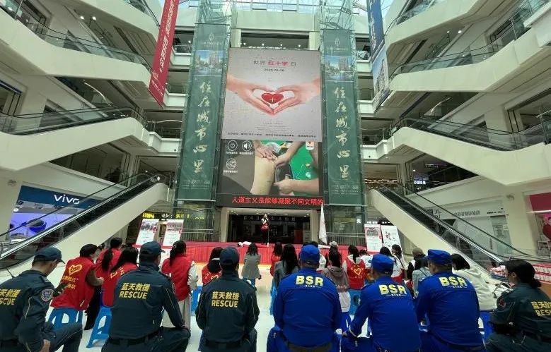 5月8日,市红十字会联合新华街道和维港城商业中心,在商场一楼大厅开展“5·8红十字博爱周”主题宣传活动。现场播放“三救三献”公益宣传片,并开展应急救护普及培训,邀请蓝天救援队、红十字志愿者上台互动和现场演示。现场向市民发放宣传品,并开展义诊与筹资募捐活动。