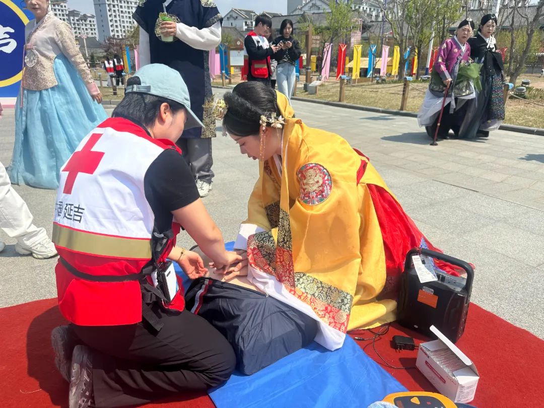 为弘扬“人道、博爱、奉献”的红十字精神,凝聚更多社会力量支持红十字事业,积极传播正能量,在第78个世界红十字日来临之际,延吉市红十字会开展以“矢志人道 携手同行”为主题的宣传活动。5月7日,新兴街道民泰社区、建工街道长生社区、延边大学人文学院,前往中国朝鲜族民俗园开展志愿服务活动。社区工作人员与志愿者们向游客普及红十字运动基本知识、应急救护技能及无偿献血、造血干细胞捐献等相关内容。讲师结合民俗园环境特点,针对可能发生的摔伤、擦伤、火灾等意外情况,为园区工作人员及游客演示伤口包扎、心肺复苏术及海姆立克急救法等实用急救技能。此外,还重点对自动体外除颤仪(AED)进行介绍,详细讲解了AED的工作原理,就是通过电击,让心脏恢复正常的电活动节律,主要适用于心跳骤停且意识丧失、呼吸停止的患者。游客们积极参与互动,纷纷上前进行实操练习,讲师们现场指导纠正动作要领,确保急救技能掌握规范。延边大学人文学院的学生们积极参与培训,认真学习每一个急救动作,并踊跃提问。培训结束后,他们迅速化身为热情的志愿者,穿梭于民俗园的各个角落。他们主动与游客交流,耐心解答游客提出的各类问题,为有需要的游客提供贴心的帮助,用实际行动诠释着红十字精神,成为民俗园内一道亮丽的风景线。与此同时,社区聚焦延边州红十字会“金达莱花开守护成长”项目,发起了“5·8人道公益日”网络众筹活动。社区热心居民和工作人员纷纷响应,通过微信扫描二维码进行捐赠。