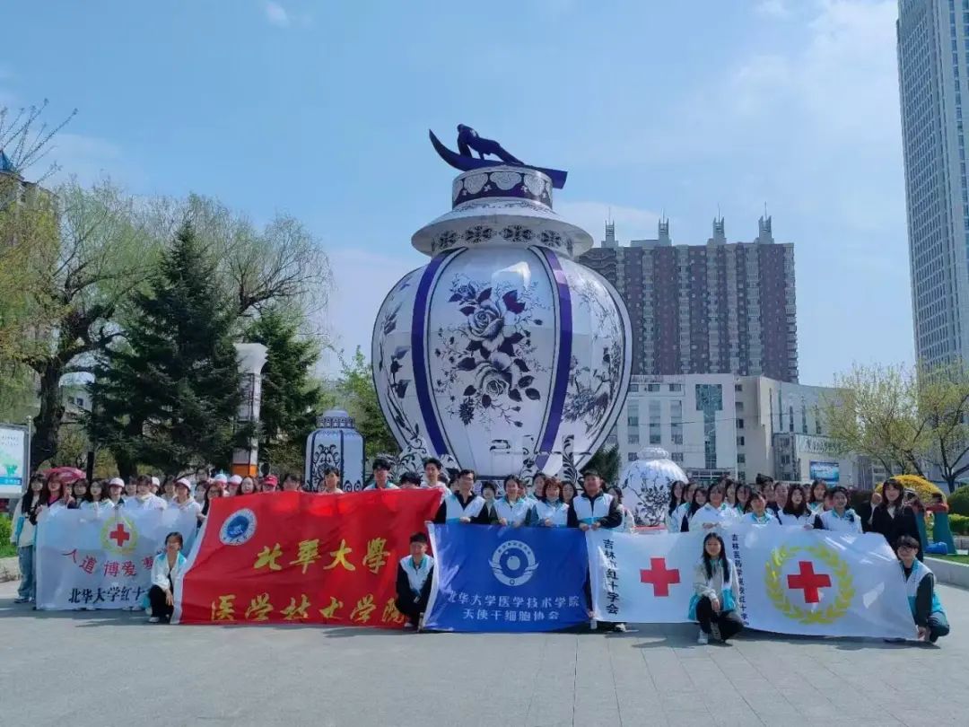 当天下午,吉林市红十字会联合吉林医药学院红十字会、北华大学红十字会、北华大学医学技术学院天使干细胞协会在世纪广场开展无偿献血和造血干细胞捐献宣传活动。60余名志愿者热情参与,通过发放宣传资料、现场讲解等方式,向市民普及无偿献血和造血干细胞捐献知识,倡导更多人加入到爱心奉献的队伍中来,用热血和爱心点燃生命的希望。
