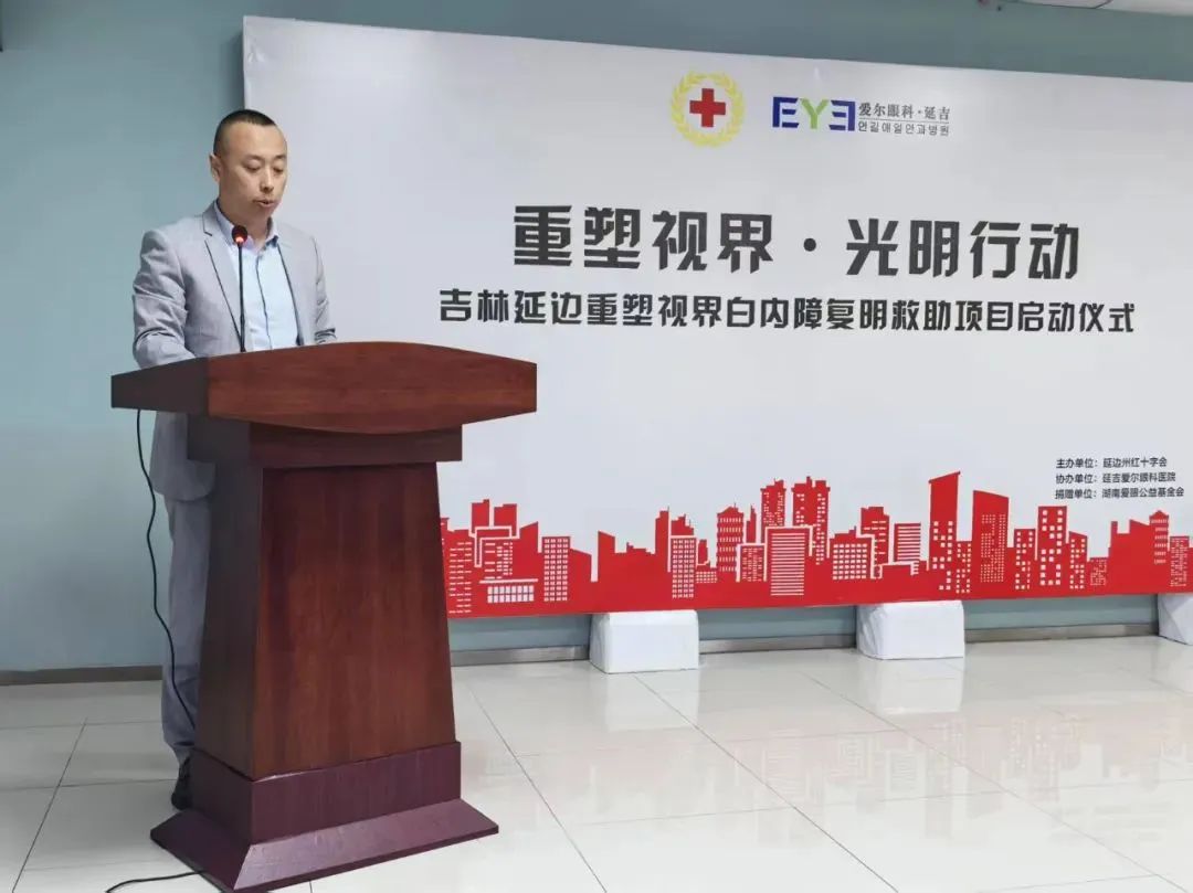 6月5日,“吉林延边重塑视界白内障复明救助项目”启动仪式在延吉市举行。延边州红十字会党组书记、常务副会长朴日仙,爱眼公益基金会副理事长兼秘书长傅阳,延吉爱尔眼科医院 CEO 宋凤伟、院长董院出席仪式。