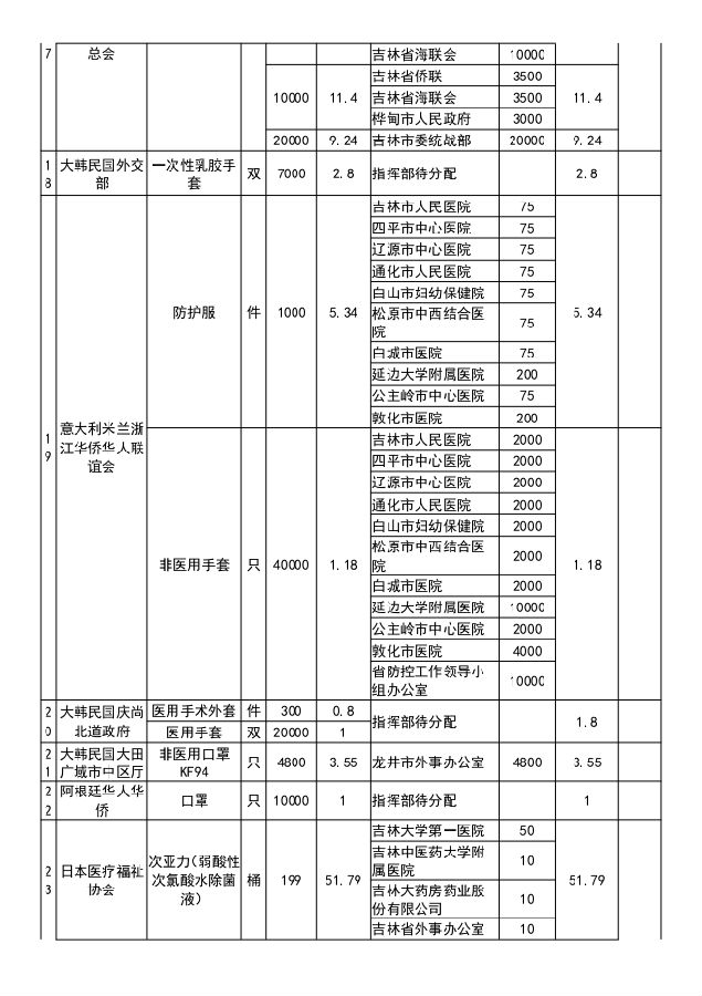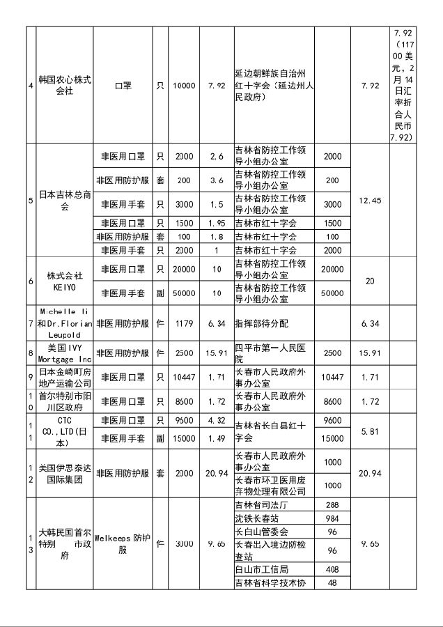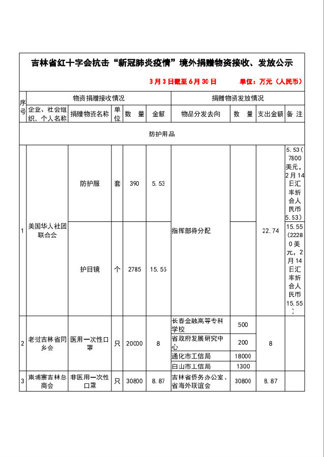 吉林省红十字会抗击“新冠肺炎疫情”境外捐赠物资接收、发放公示