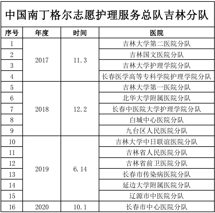 附南丁格尔护理志愿服务队分队名单: