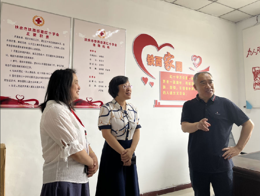 在扶余市铁西街道红十字会,扶余市委副书记田宇向调研组介绍了扶余市红十字会在抗击疫情工作中募集款物、关爱隔离学生心理健康、为封校学生送去应急食品及精神慰问等工作情况。街道负责同志详细讲解了基层组织建设和红十字特色活动开展情况。牛继东同志对铁西街道红十字会的文化宣传、开展的特色活动给予肯定,并指出应急救护培训是红十字会的核心业务,县市区储备师资力量是开展应急救护培训工作的当务之急,县市区红十字会要进一步加强应急救护师资队伍建设,着力提高应急救护工作整体水平,将应急救护培训“五进”工作落到实处,让更多的社区群众掌握救护知识和技能。