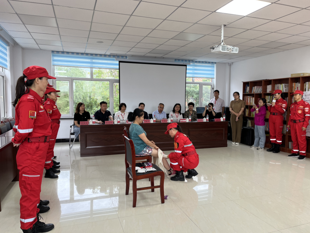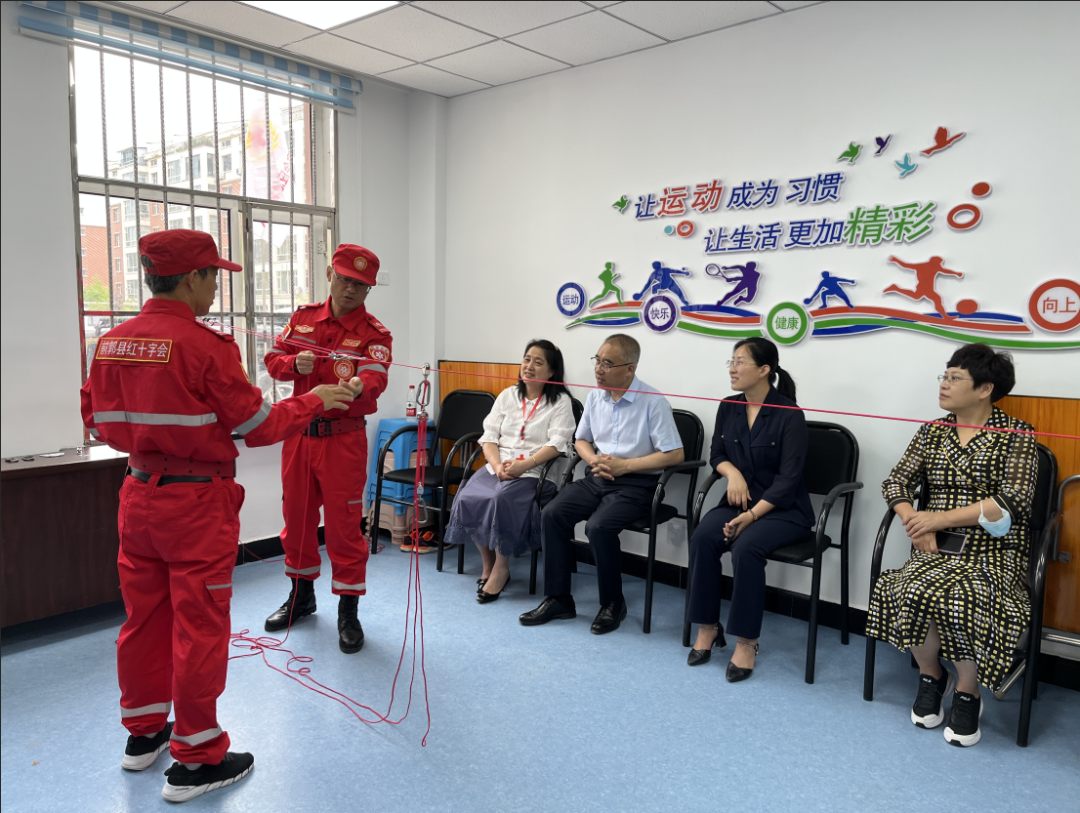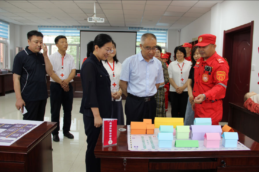 在前郭县乌兰社区红十字会,调研组考察了前郭县红十字会应急救援队的建设情况。应急救援队现场模拟了地震应急救援演练,展示了应急救灾桌面模型,应急救援队员展示了绳索的几种救援方式方法。牛继东同志指出,前郭县地理位置特殊,地震多发、雨季易发生洪涝灾害,建立应急救援队十分必要。要加强应急救援演练,锤炼队伍的应急救援能力,在保障人民群众生命安全的同时更要保证救援人员的安全,要落实必要的保障措施,确保安全救援。前郭县副县长张秀明针对调研组提出的具体问题明确表态,下一步将大力支持红十字会工作,发挥红十字会作用,让红十字事业发展成果惠及更多群众。