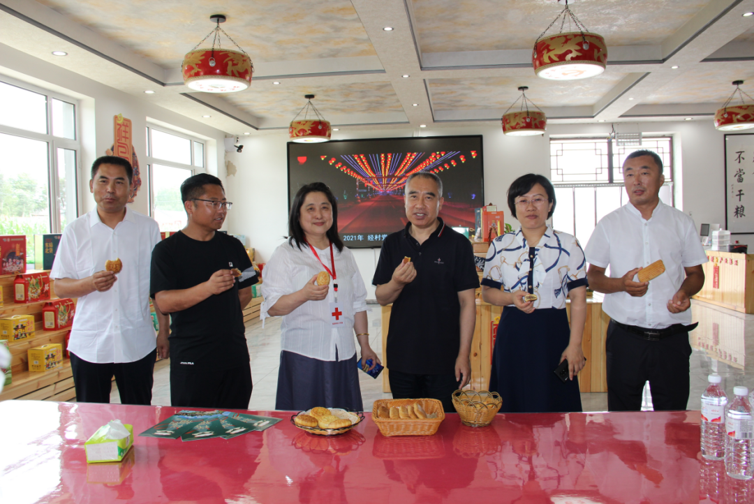 在扶余市永平乡平安小镇红十字会调研期间,调研组参观了九连山村食品产业加工厂,现场品尝了当地生产的月饼、炉果等特色食品。村书记详细讲述了建设基层红十字会对九连山村建设的重要影响,特别是肿瘤救助项目与每户家庭息息相关,切实解决了村民看病难的问题,赢得了口碑和民心,在当地红十字知识已融入村民日常生活,当地的经济发展和基层红十字组织建设形成相互融合相互促进的良性循环。