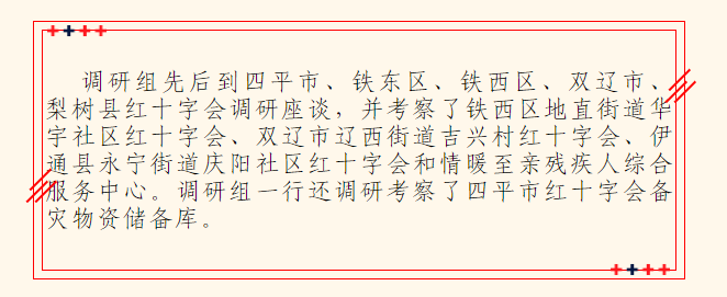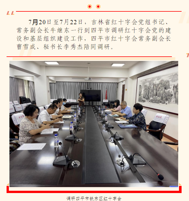 吉林省红十字会党组书记、常务副会长牛继东到四平调研理顺管理体制、党的建设及红十字会基层组织建设工作