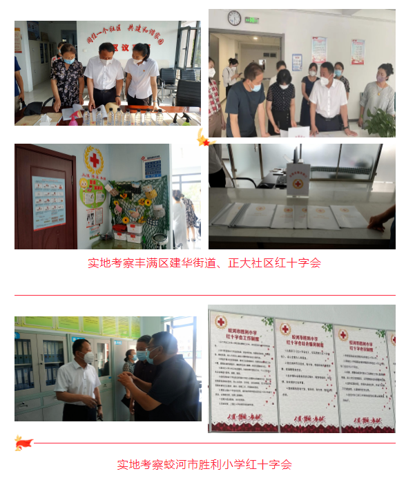 调研组在吉林市先后与吉林市红十字会以及丰满区、龙潭区、船营区、昌邑区,蛟河市、永吉县等县(市、区)红十字会开展座谈,同时,对丰满区建华街道社区、蛟河市胜利小学、蛟河市河北社区卫生服务中心、永吉县口前镇永安社区、永吉县第二实验小学红十字会等基层组织进行了实地考察。