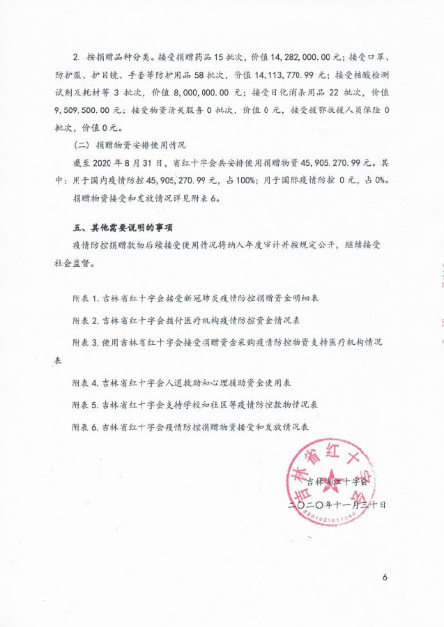 吉林省红十字会新型冠状病毒肺炎疫情防控社会捐赠款物收支情况审计报告