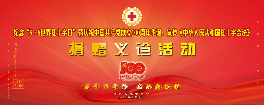 为纪念庆祝中国共产党成立100周年华诞,迎接第74个“世界红十字和红新月日”的到来,传递“人道、博爱、奉献”的红十字精神,推进我省红十字事业持续健康发展,吉林省红十字会诚邀广大市民到长春文化广场北侧地质宫前参加纪念“5·8世界红十字日”暨庆祝中国共产党成立100周年华诞、宣传《中华人民共和国红十字会法》社会捐赠义诊公益活动。