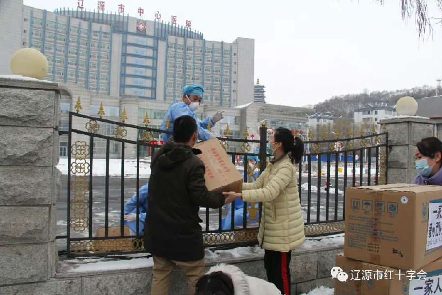 2022年3月15日,辽源市红十字会向辽源市中心医院送去口罩、防护服、消杀用品等价值1.52万元的定向防控物资,助力辽源市中心医院的疫情防控工作。