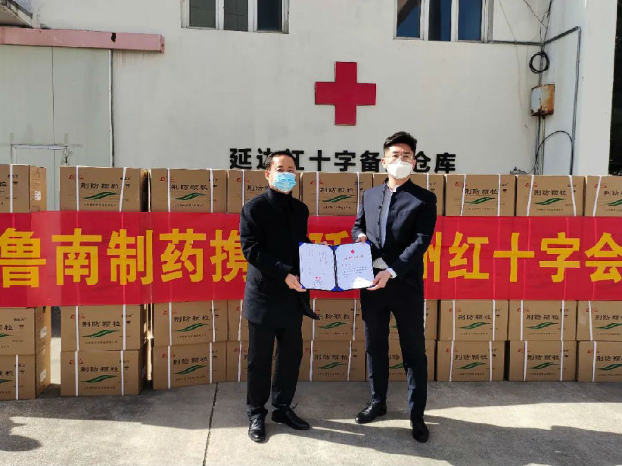 3月11日,延边朝鲜族自治州接受鲁南制药集团捐赠的价值200余万元的防疫药品(启达力®荆防颗粒)。并陆续发往延边大学附属医院、汪清县中医院、延吉市中医院及敦化、珲春、安图等地,用于抗疫一线工作人员的疾病预防。