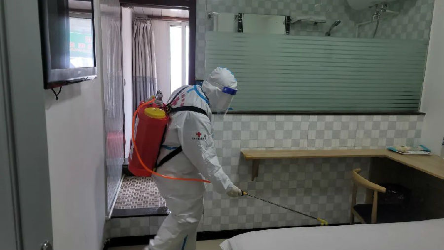 4月3日,四平市红十字会海上虎志愿服务分队受四平市环境消杀专班邀请,赴本市美好晟苑小区隔离点对250个房间进行全面消杀。