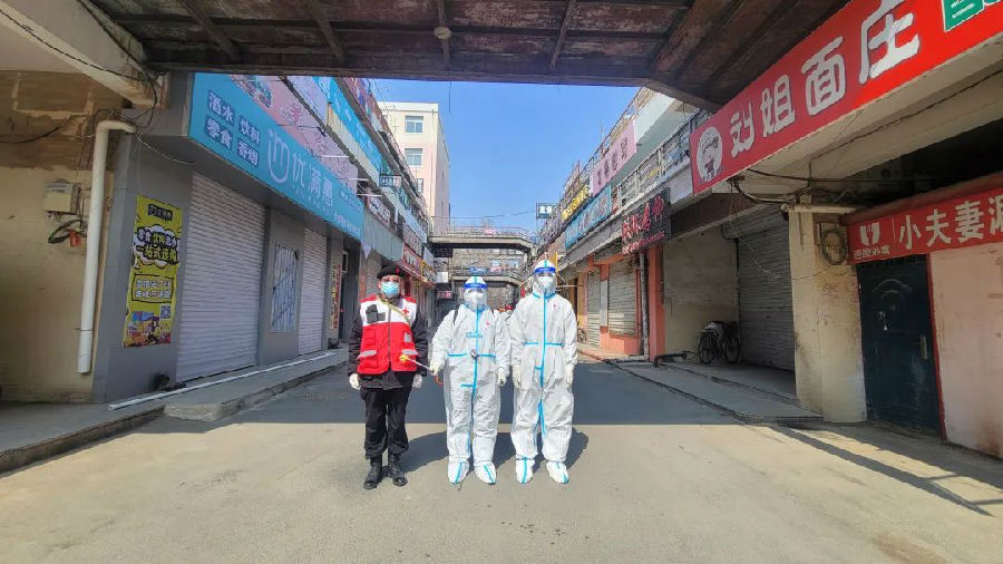 4月4日,应四平市阳光社区请求,四平市红十字会组织四平市红十字会海上虎志愿服务分队对本市凯虹市场内两家旅馆进行全面消杀。
