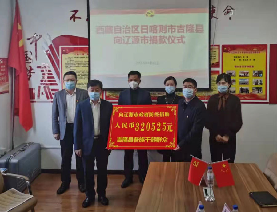4月6日,辽源市红十字会接受来自对口援藏地区——西藏自治区日喀则市吉隆县委、县政府捐赠30万元及吉隆县各族干部群众捐款32.05万元,总计62.05万元捐赠善款,将全部用于辽源市疫情防控工作。多年以来两地虽然山水相隔,却凝结了深厚的感情。吉隆县心系辽源,牵挂辽源,通过捐款贡献力量、表达爱心、支持辽源政府、关爱辽源人民,彰显了吉隆县的责任担当和大爱无疆的家国情怀。