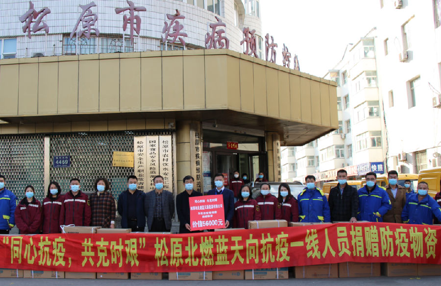 战疫情,有温情。4月12日,松原市北燃蓝天新能源有限公司充分发挥优秀企业精神,勇于承担社会责任,通过松原市红十字会为松原市防疫工作人员捐赠价值5.6万元的3万只的医用口罩、500套医用防护服、1000个防护面屏及5000顶一次性医用帽。