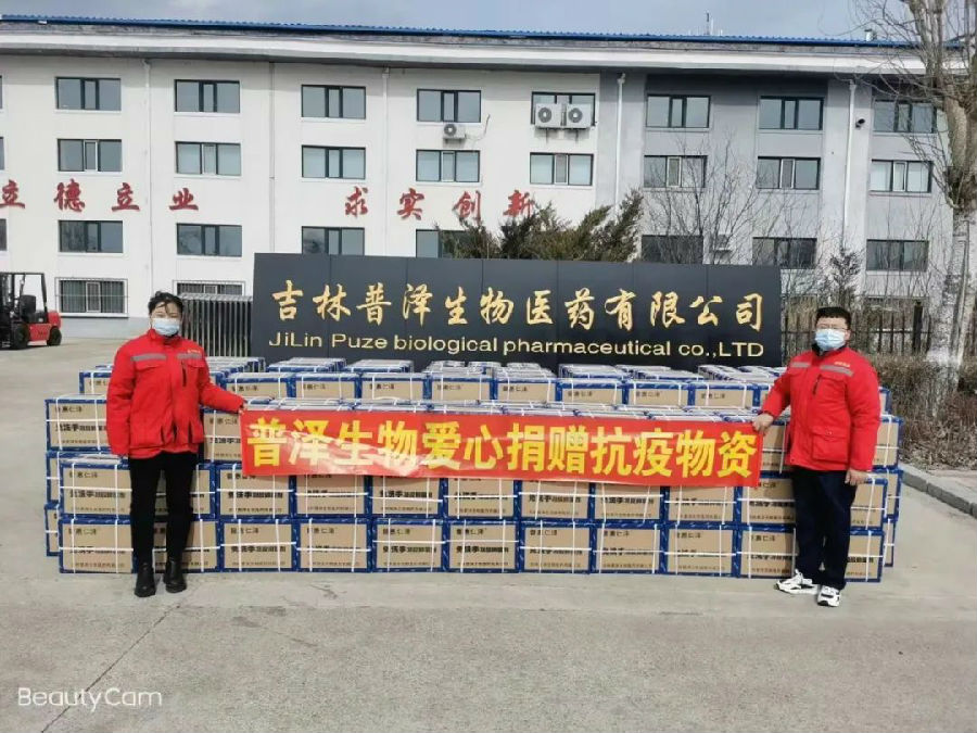 4月21日,吉林普泽生物医药有限公司向延边朝鲜族自治州红十字会捐赠了价值9万元的免洗手消毒凝胶抑菌剂,用于支持和龙市防疫一线人员,助力疫情防控工作。