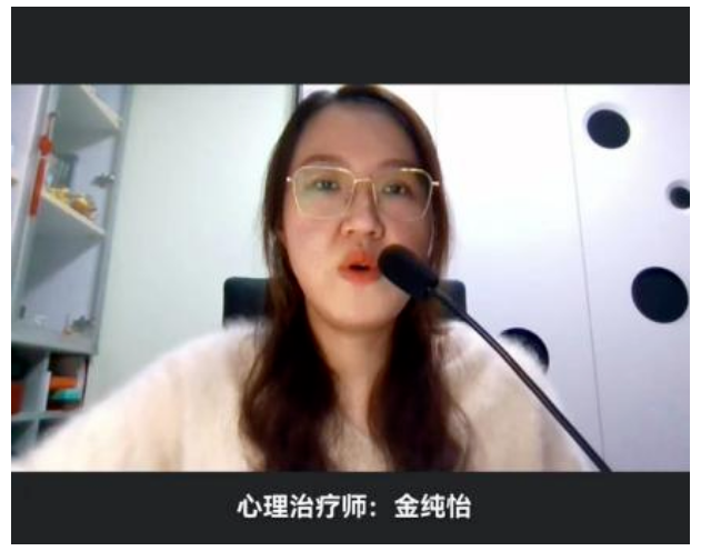 金纯怡为吉林省红十字会志愿者,吉林大学第一医院心理卫生科心理治疗师。负责“心理公益讲堂”中11个培训课程,包含“与情绪共处”、“和自己连接”“微笑的力量”“渐进式放松体验”等冥想训练,以及所有课程的宣传图片的制作,每一幅图片都蕴含着积极的心理能量和健康向上的引导。