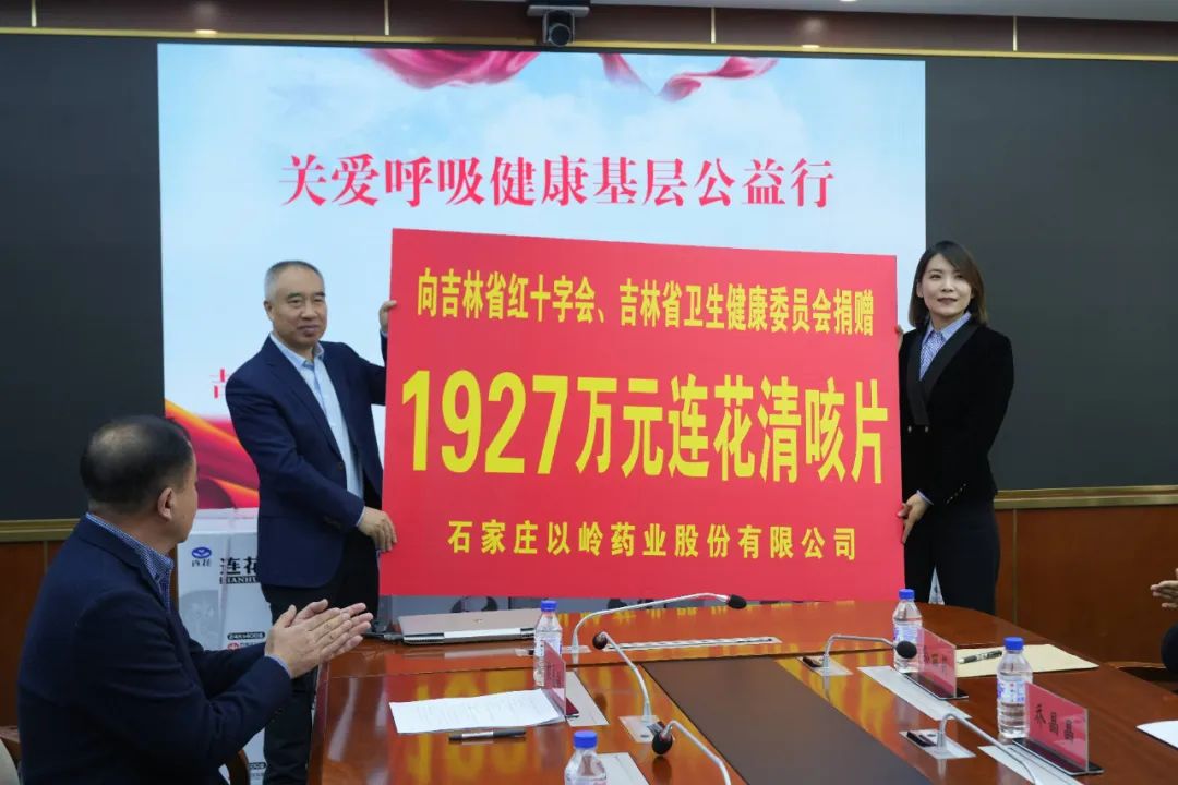 为深入贯彻落实党的二十大精神和习近平总书记在新时代推动东北全面振兴座谈会上重要讲话重要指示精神,把惠民生、暖民生、顺民意的工作做到群众心坎上。2023年12月1日,省红十字会、省卫生健康委员会联合石家庄以岭药业股份有限公司开展“关爱呼吸健康基层公益行”捐赠仪式正式举行,省红十字会党组书记、常务副会长牛继东,省卫生健康委员会副主任、一级巡视员高占东,石家庄以岭药业吉林省区市场营业部经理乔晶晶等出席仪式。