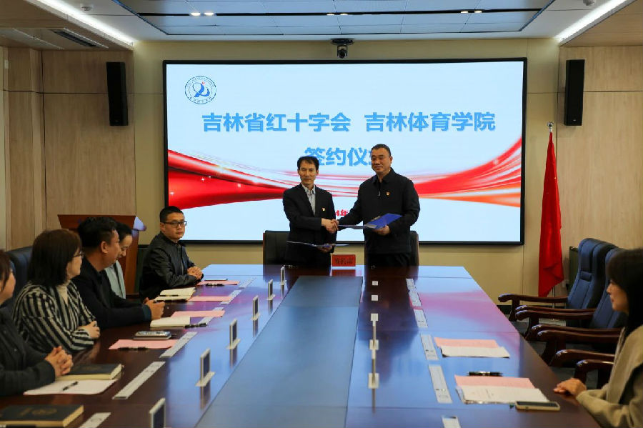 刘冰秘书长、吉林体育学院方方副校长签订基地管理协议书,共同为基地揭牌,联合成立吉林省红十字会应急救护培训基地。这标志着应急救护培训将覆盖至全校教职员工,有效提高师生自救互救技能,为保障学生生命安全,维护校园安全发挥重要作用。随后,吉林省红十字会向学校捐赠了电脑版模拟人1套、简易版模拟人3套、AED训练器2台。