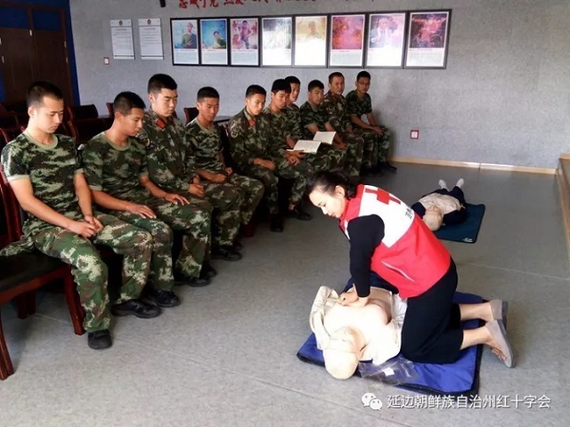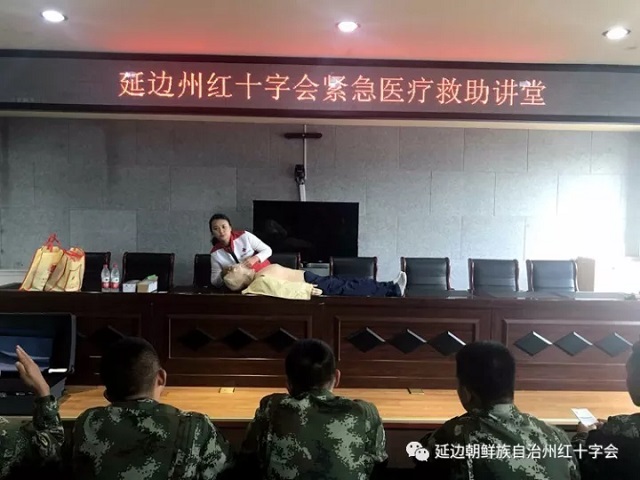 (延边红会于姗姗报道)近日,为切实提高消防官兵在灭火和抢险救援过程中的自救互救能力,州红十字会为延吉市消防大队河南中队的消防官兵开展了救护员培训。