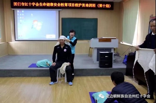 为进一步加强学校应急救护工作,普及救护知识,提高广大教师自救互救能力,建设平安校园,近日,图们市红十字会分别在市六中、市职业教育中心举办了生命健康安全教育项目救护员培训班。活动邀请了市红十字会专业救护培训师现场授课,培训采取理论授课和实操相结合的方式,主要讲授了心肺复苏、创伤救护知识(主要包括止血、包扎、固定、搬运)、常见急症现场处理、突发事件及意外情况发生时如何自救互救和应急救护实际操作技能。