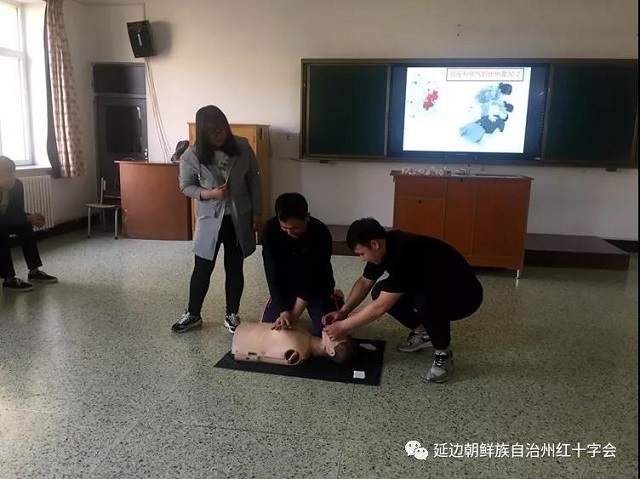 为提高学校教师面对突发事件和意外伤害事故的应急救援和自救互救能力,4月13日,延吉市红十字会走进延吉国际合作技术学校为40余名教师开展了应急救护知识培训。