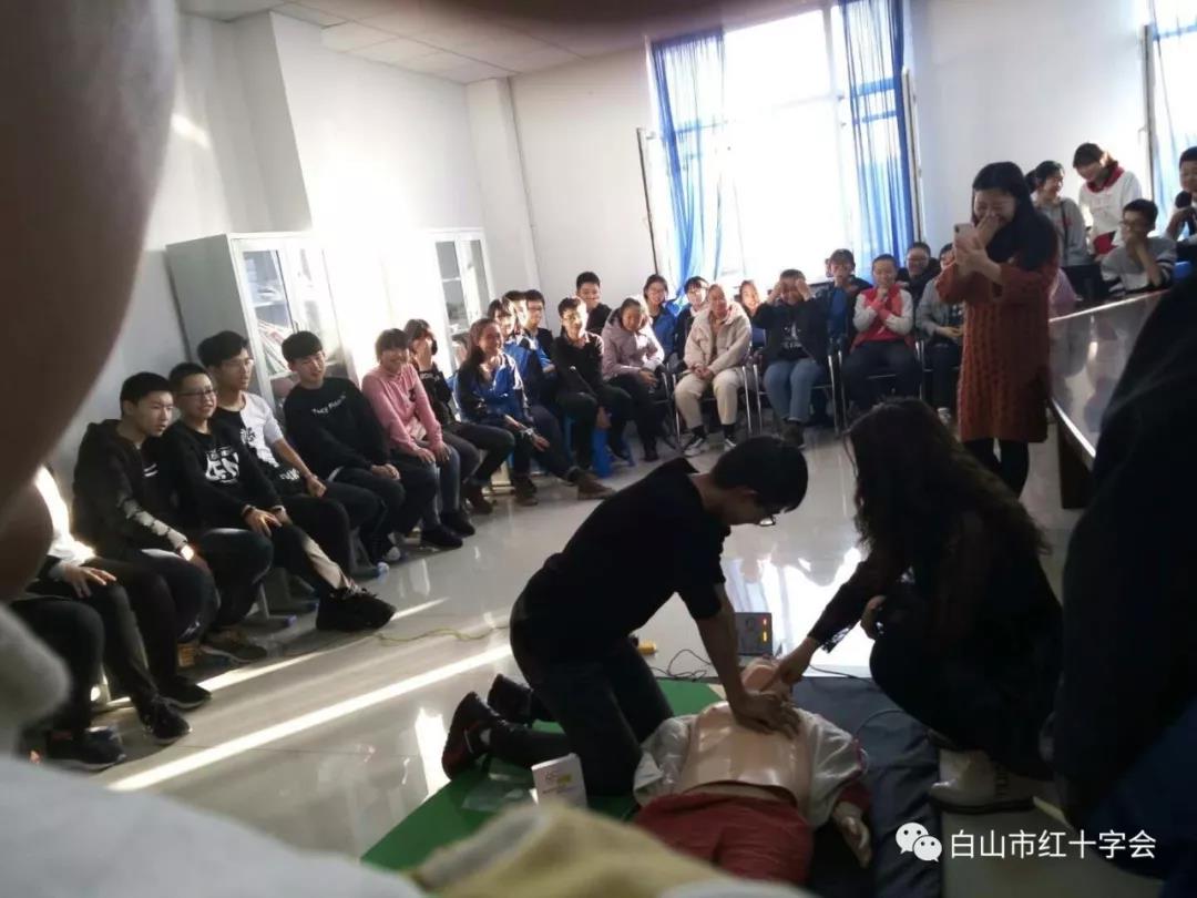 11月30日,江源区红十字会走进白山七中协力校区,开展应急救护培训,向学生们讲解了心肺复苏的实际操作过程以及在突发事件中的自救常识,通过实践演练,使同学们了解并掌握了基本的现场急救知识和技能,同学们均感到受益匪浅,通过此次培训,有效提高了孩子们应对突发事件的紧急处理与自救互救能力.