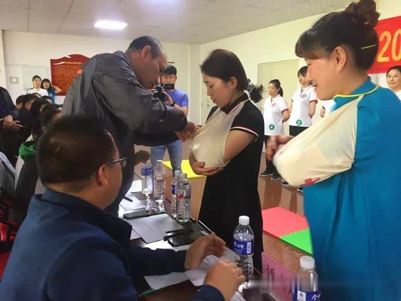 来自市直机关党工委、市教育局和三个街道办事处的7支代表队参加了比赛。参赛队分成三组进行同台竞技,每个参赛队的1-5号选手依次进行成人心肺复苏、左前臂出血包扎、左大腿中段骨折固定包扎、腹部左侧匕首扎伤未拨出匕首固定包扎的实际操作和理论答题及演讲环节。经过紧张激烈的角逐,市新华街道代表队获得冠军。