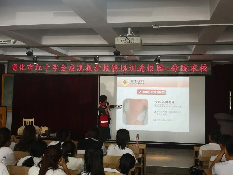 2023年9月4号通化师范学院分院 通化农业学校联合通化市红十字会在阶梯教室召开了通化市红十字会应急救护技能培训进校园活动!