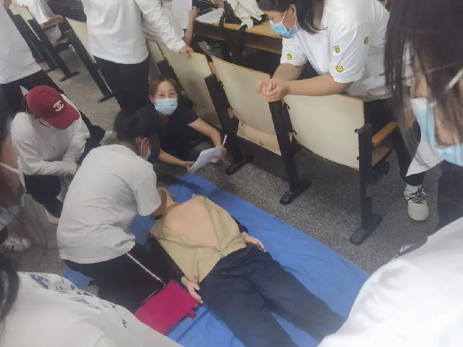 实操环节,由通化市红十字会工作人员亲自为我校师生指导,同学们一一进行实际操作,认真学习,感受救护的重要性!