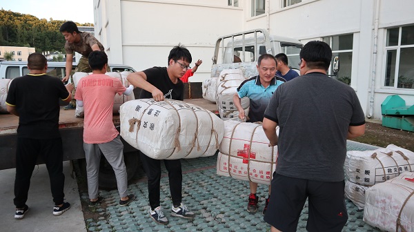 吉林省众太工程建设招标有限公司延边分公司经理张婧涵女士通过电视、微信朋友圈,得知安图灾情,心急如焚,积极联系安图县红十字会,了解灾区急需物资,并积极筹措。22日下午张经理代表企业向安图灾区无偿捐献矿泉水500箱、方便面400箱、火腿肠80箱,价值共计22600元,并驱车送到安图县受灾严重的石门镇。