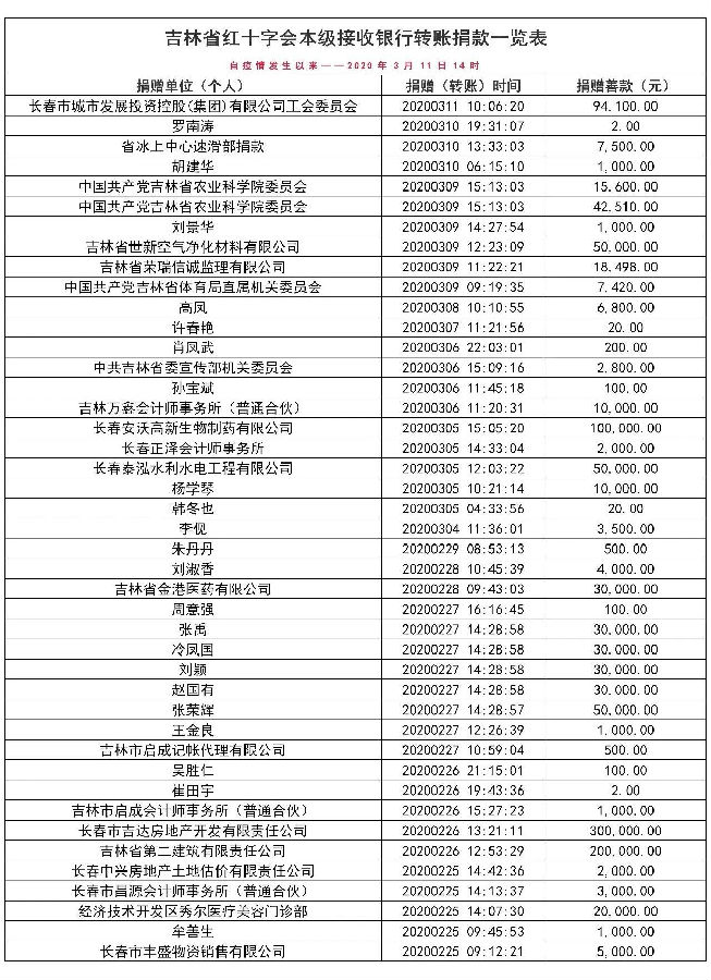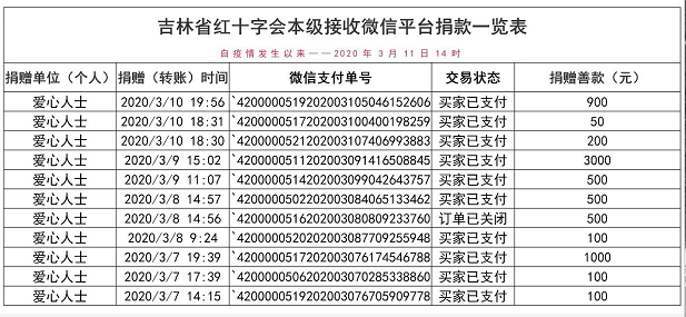 下一篇: 【捐赠公示】吉林省红十字会接受社会捐赠一览表(自疫情发生以来——2020年3月3日14时)