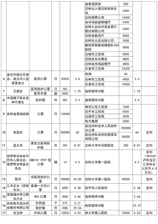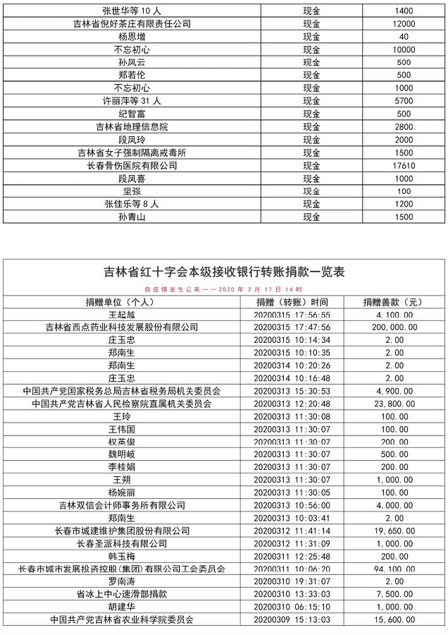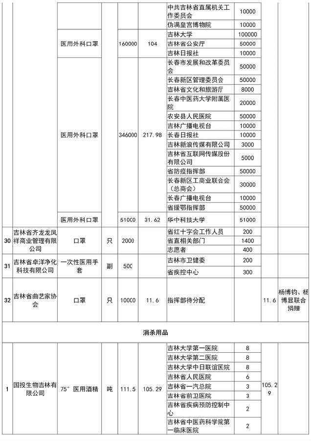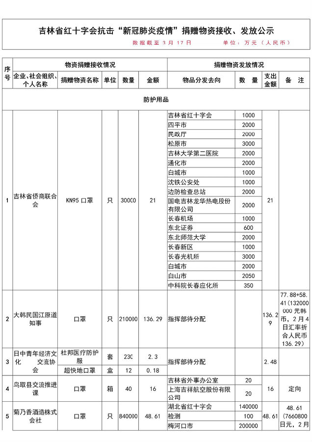 具体社会捐赠款物接收与支出明细可在吉林省民政厅、吉林省红十字会官网查阅。各市(州)红十字会社会捐赠款物接收与支出情况,详见各地公告。