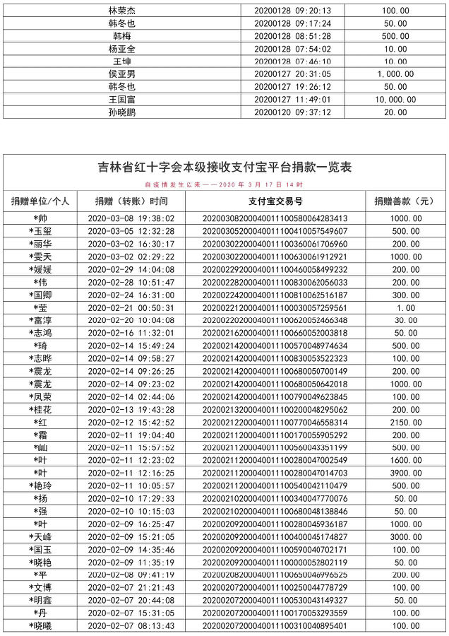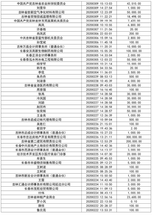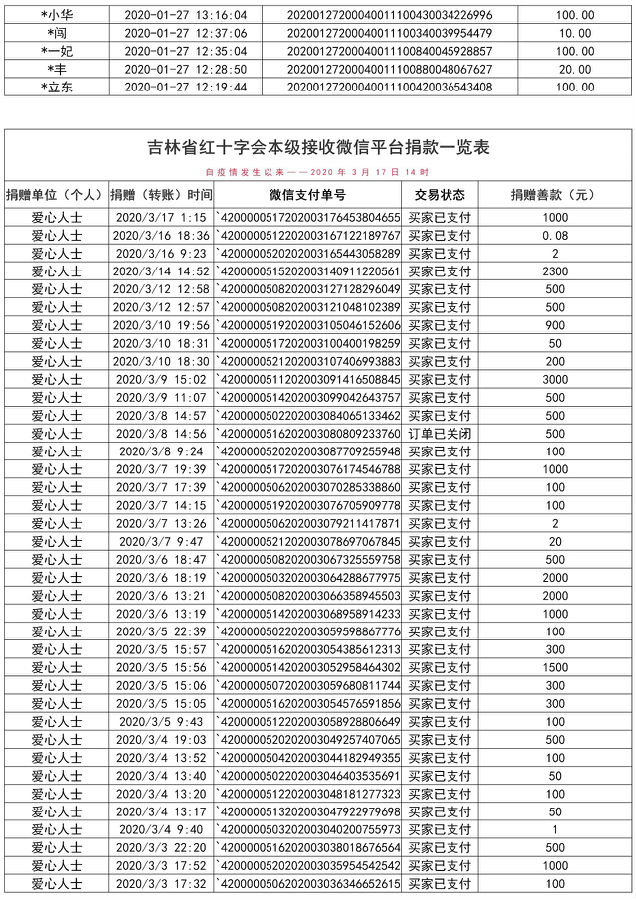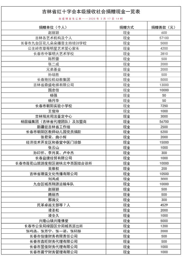 下一篇: 【捐赠公示】吉林省红十字会接受社会捐赠一览表(疫情发生以来—2020年3月11日14时)