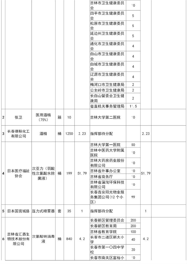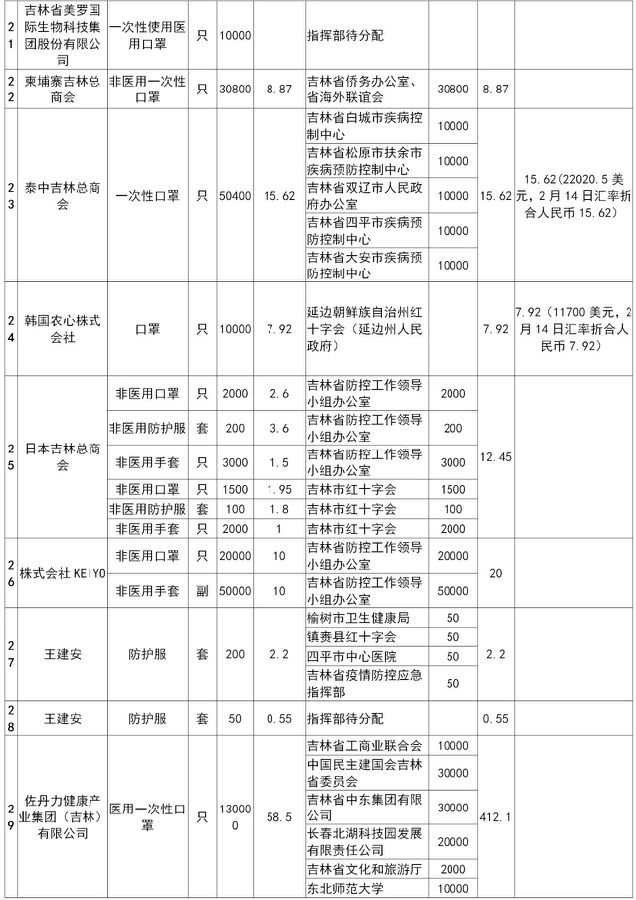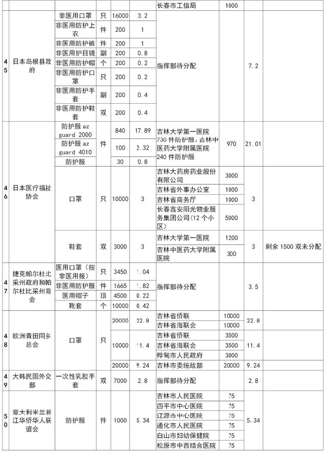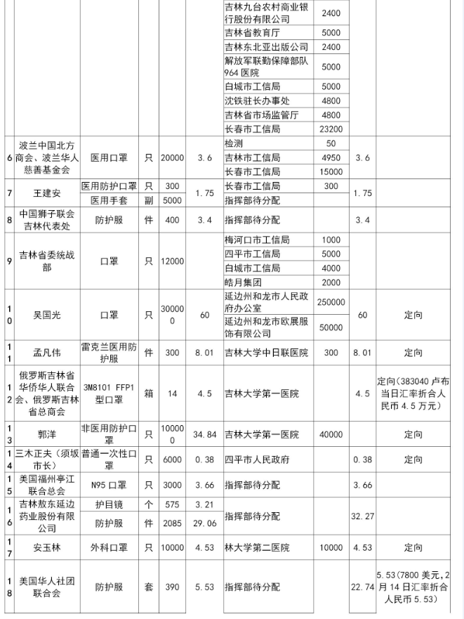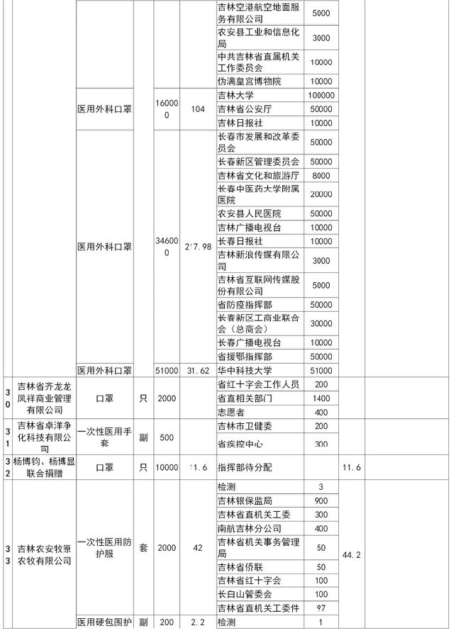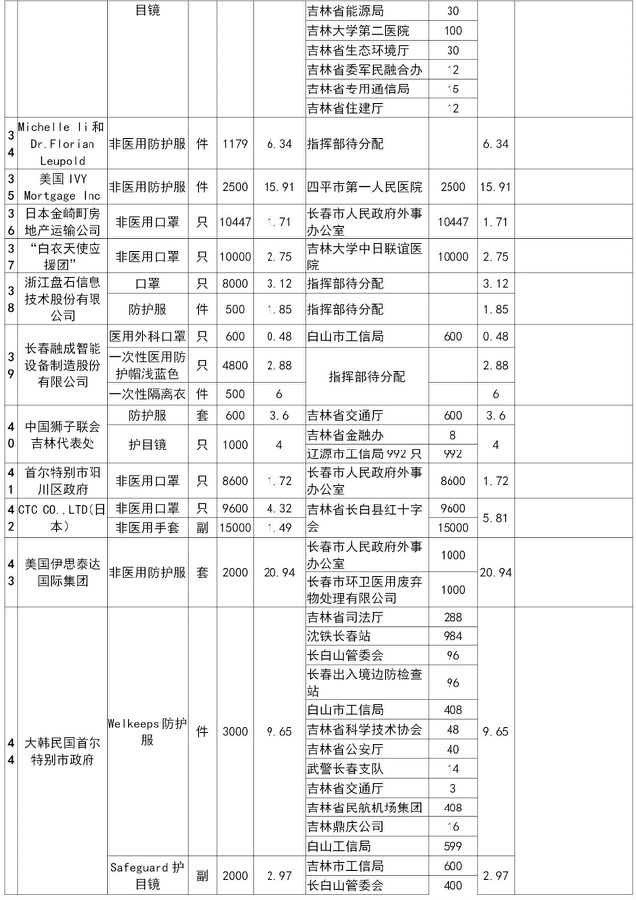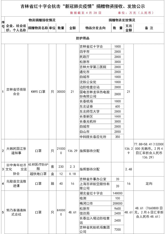 省红十字会本级接收捐赠物资价值人民币4515.77万元,捐赠物资由吉林省疫情防控领导小组统一调配支出。