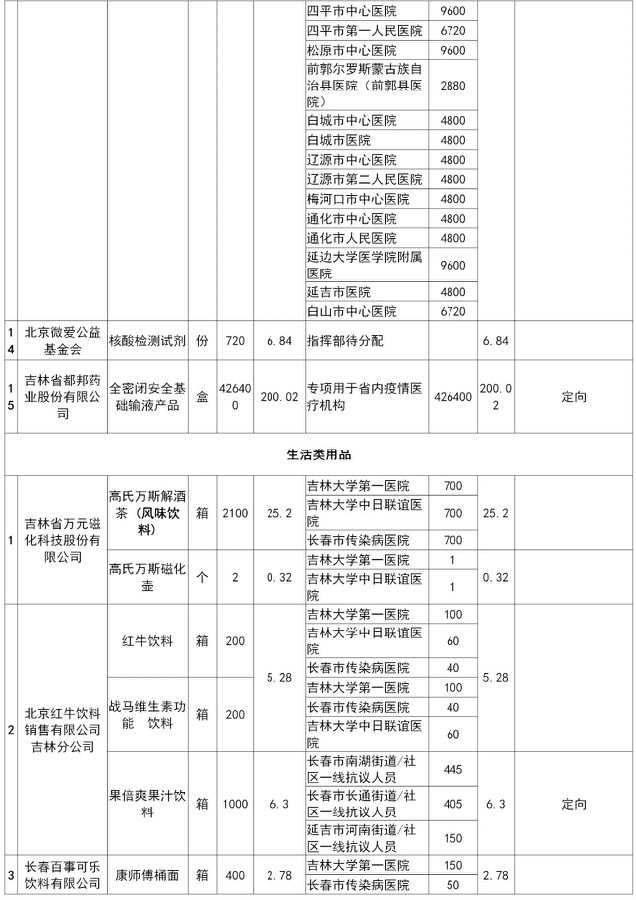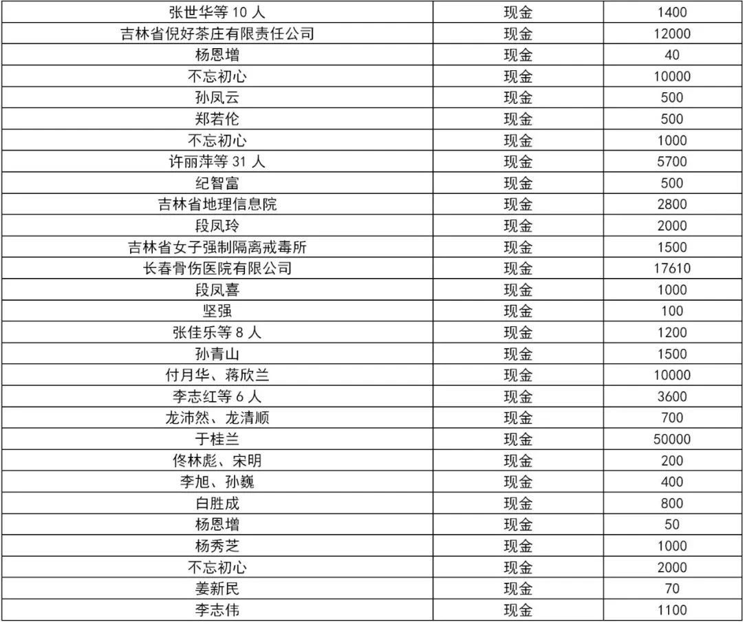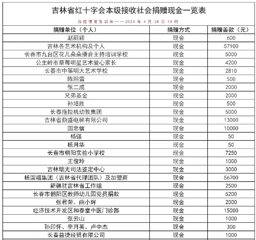 具体社会捐赠款物接收与支出明细可在吉林省民政厅、吉林省红十字会官网查阅。各市(州)红十字会社会捐赠款物接收与支出情况,详见各地公告。