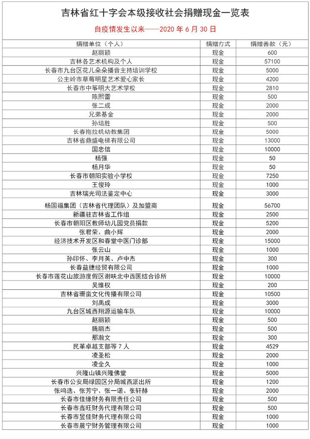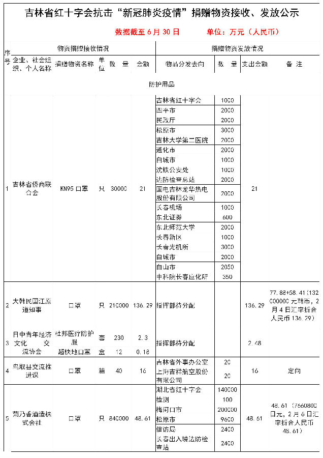 具体社会捐赠款物接收与支出明细可在吉林省民政厅、吉林省红十字会官网查阅。各市(州)红十字会社会捐赠款物接收与支出情况,详见各地公告。