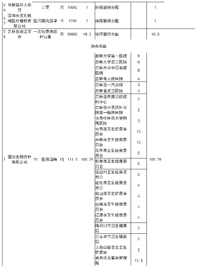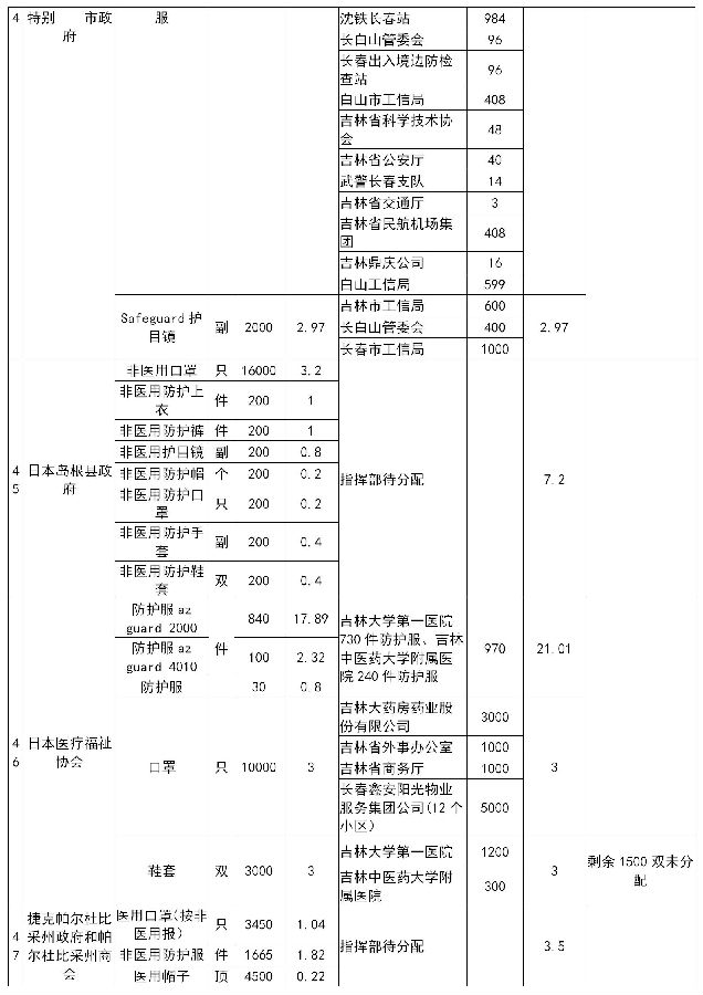 省红十字会本级接收捐赠物资价值人民币4519.4万元,捐赠物资由吉林省疫情防控领导小组统一调配支出。