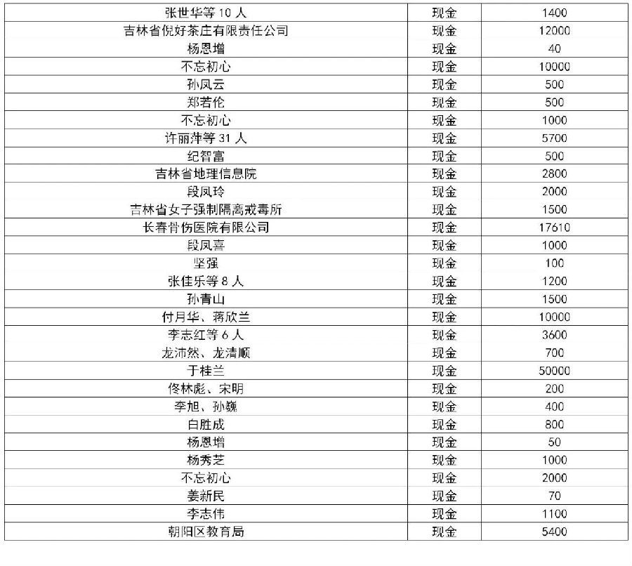 下一篇: 【捐赠公示】吉林省红十字会接受社会捐赠一览表(疫情发生以来—2020年4月28日14时)